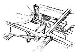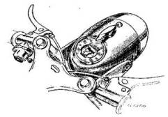 pédale de frein arrière agit par pression sur la gaine du câble. On notera la