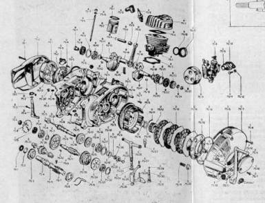 Rapports de démultiplication : 1re …………………………….. 12,38 2ème …………………………… 18,32 3ème …………………………… 23,37 Alimentation : Carburateur Dell’Orto à cuve séparée. |