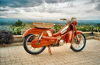 HISTOIRE D’AMIS : Lorsqu’en 1998, l’ami Jean-Georges SIRGUEY me présente sa trouvaille, le doute m’envahit. Bien sûr, cet amas de rouille est né Sommet, mais vais-je pouvoir en tirer quelque chose ? Moteur et boîte irrécupérables, partie cycle en dentelle après trente ans de cave ! Après un examen minutieux de l’épave, une lueur d’espoir apparaît, la coque est « restaurable ». Etant donné l’ampleur de la tache, le projet est reporté à une date ultérieure, sauf que trois mois plus tard, l’ami Julien COSSO me demande de lui restaurer une Motobécane, une 98 Sommet serait la bienvenue !...
