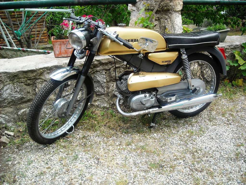 Le Derbi 50 Antorcha tri Campeona 1970, trois vitesses au pied, rare dans nos contrées, surtout avec cylindre et culasse Derbi gran sport de André M.