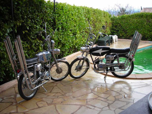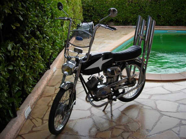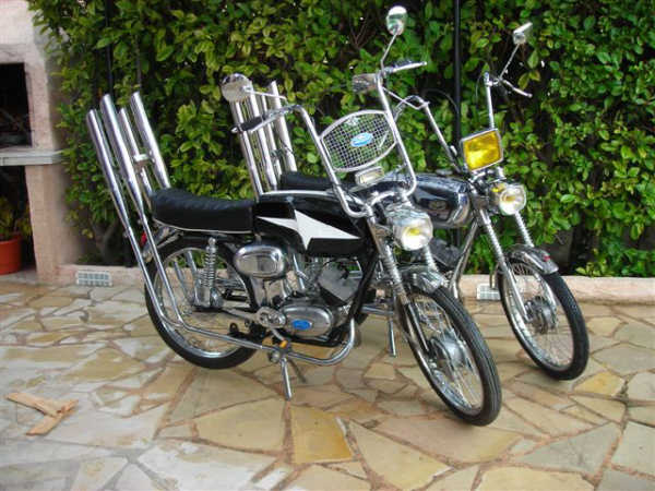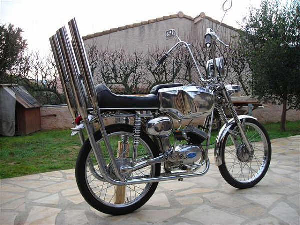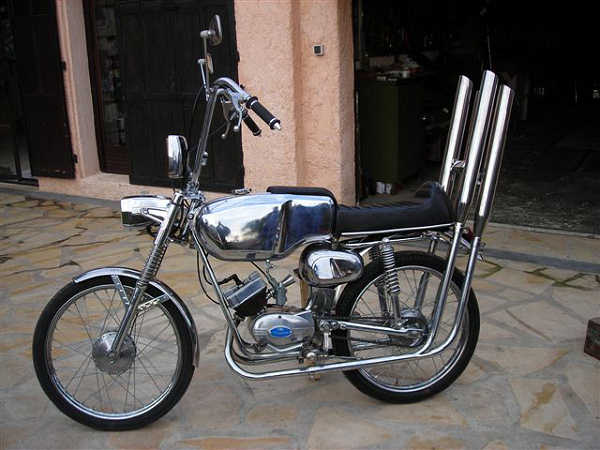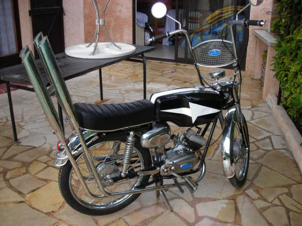 Malaguti Olympique tout chromé, monté chopper comme au salon 68.
